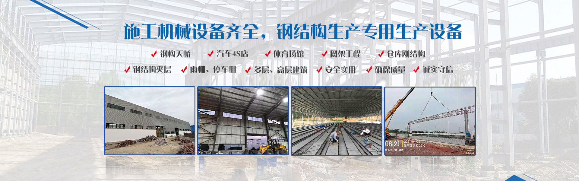 公司綜合實力雄厚,施工機械設(shè)備齊全,配置有多條焊接H型鋼生產(chǎn)線,箱型鋼生產(chǎn)線,以及C/Z型鋼生產(chǎn)線,樓承板、彩鋼板、夾芯板等專用生產(chǎn)設(shè)備,產(chǎn)品質(zhì)量可靠。